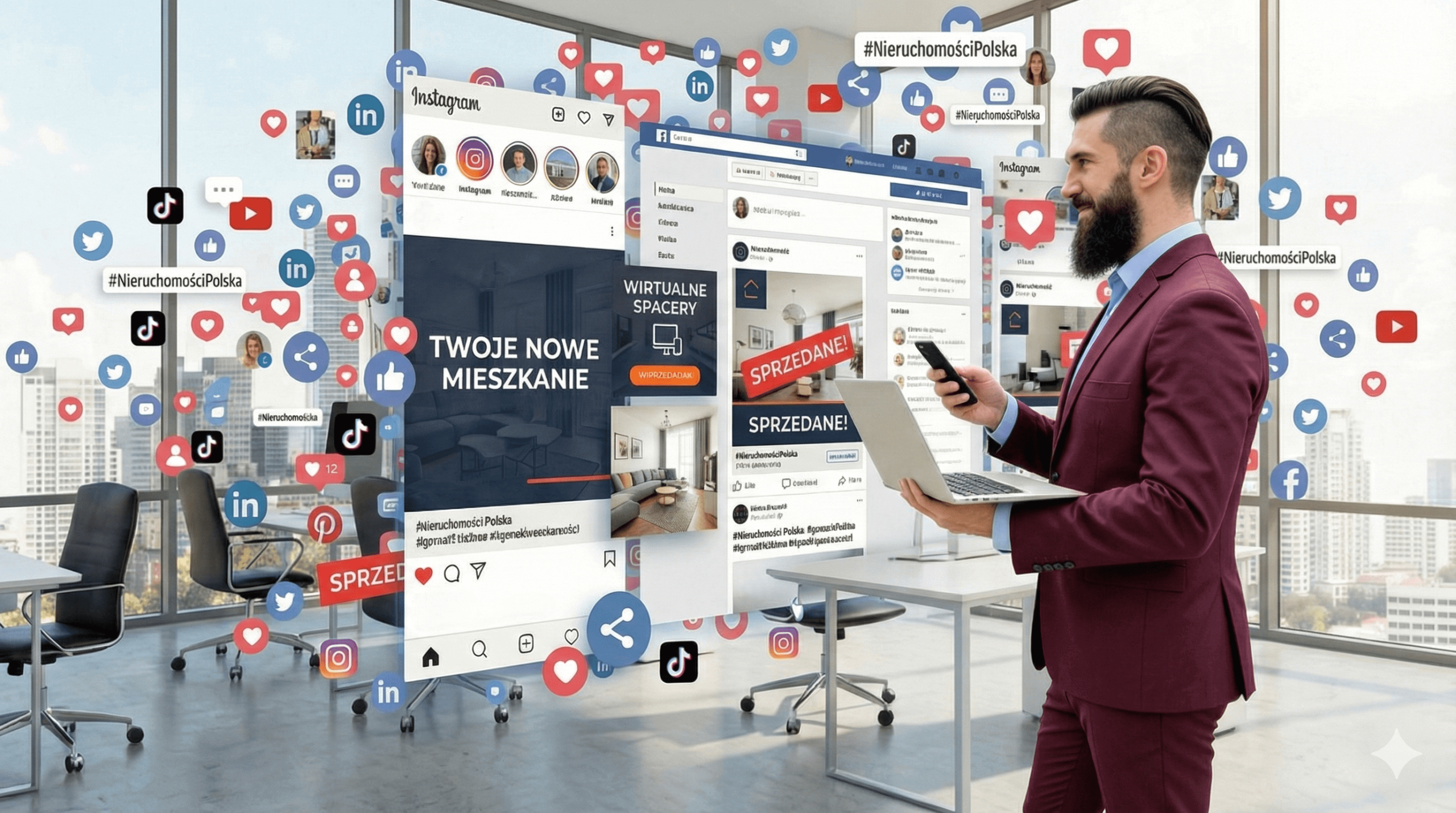 Jako nowoczesna agencja nieruchomości aktywnie promujemy oferty na Facebooku, Instagramie i TikToku, wykorzystując wideo, storytelling i reklamy targetowane do konkretnych grup kupujących.